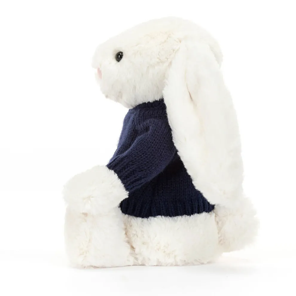 Bashful Cream Bunny with Personalised Navy Jumper